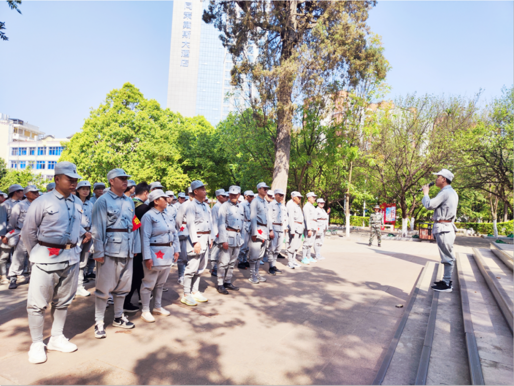 4月22日,大家一早就早早起床换上红军装,为接下来的活动提前做好准备。此次活动采取独具特色的“红色体验教学”,把封闭的理论小课堂和开放的红色大课堂相结合,让红色资源活起来、使革命精神时代化;用现代人容易接受的开放的参与方式,使理想信念潜移默化、润物无声。